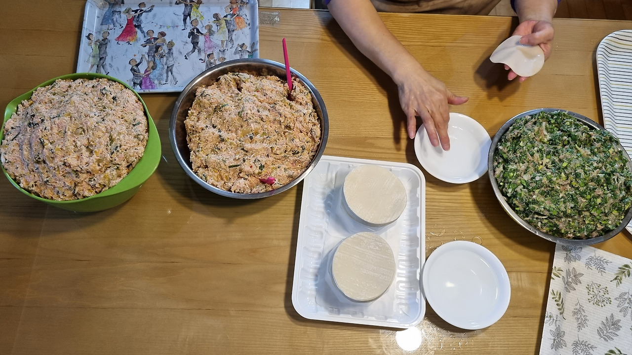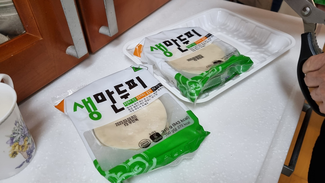 - 냉동된 만두피는 하루 전에 냉장실에서 해동시켜 놓는다.