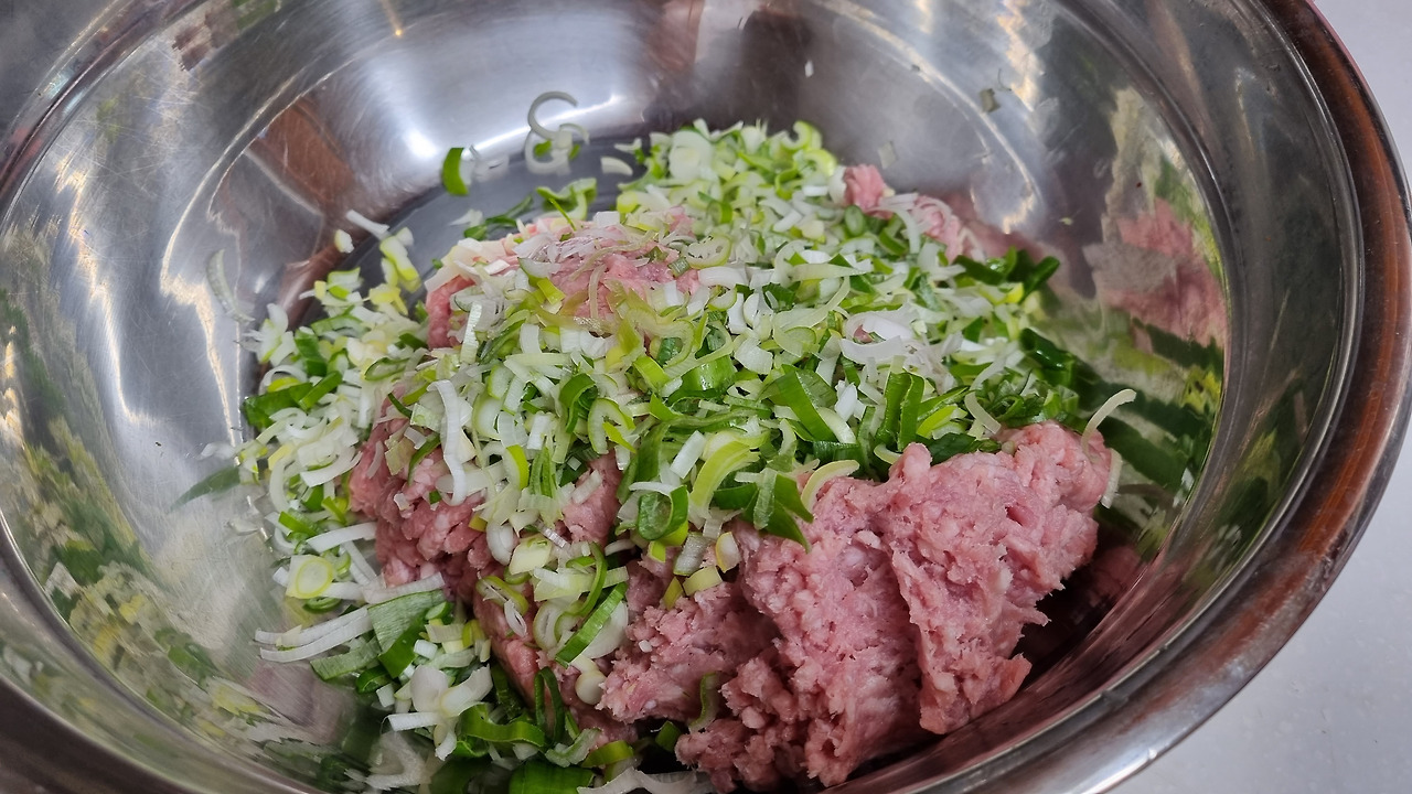 - 고기양념 : 간장 0.5T, 다진마늘 1T, 생강술 2t, 후춧가루 약간, 맛술 0.5T, 소금 2t