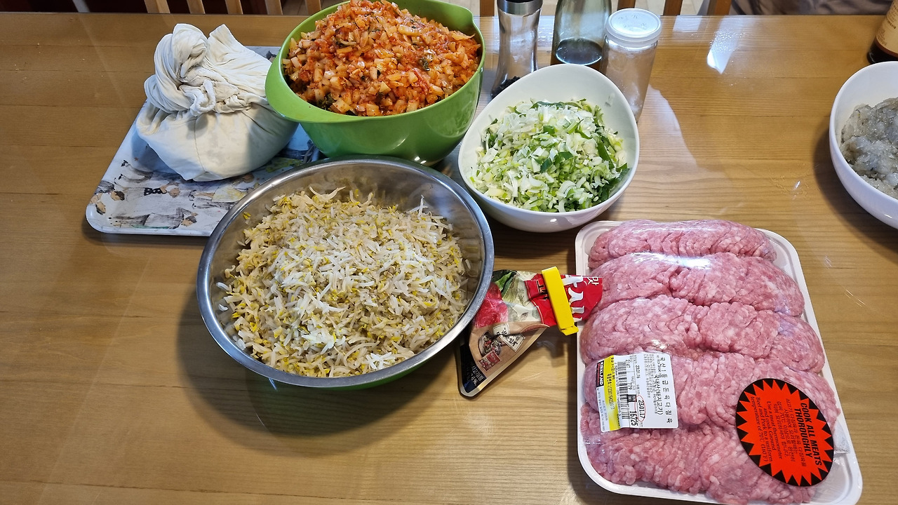 - 전자레인지에 만두소 조금 익혀 간보기