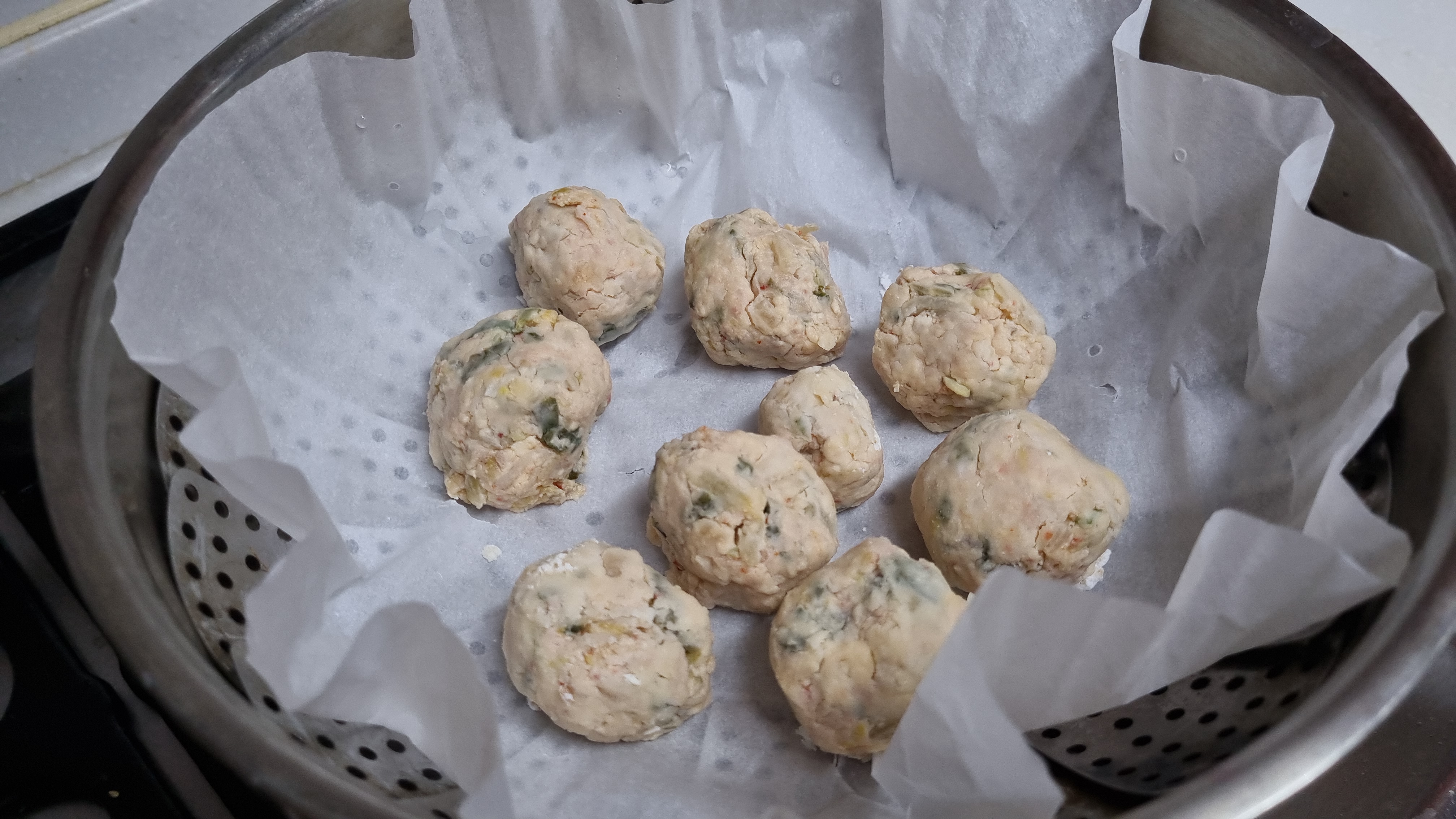 - 만두소로 만든 완자도 김 오른 찜기에 쪄낸다.