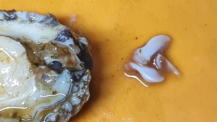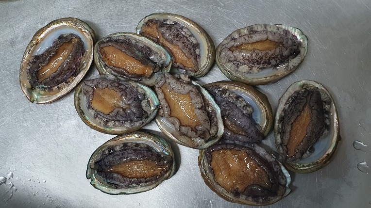 - 전복 밑의 모래주머니는 제거하고 전복의 한쪽 끝에 있는 전복의 이(齒)를 떼어낸다.