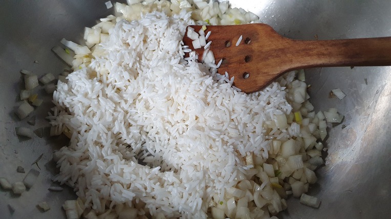 - 팬에 참기름 2+1/2큰술을 두르고 손질한 양파를 먼저 볶는다.