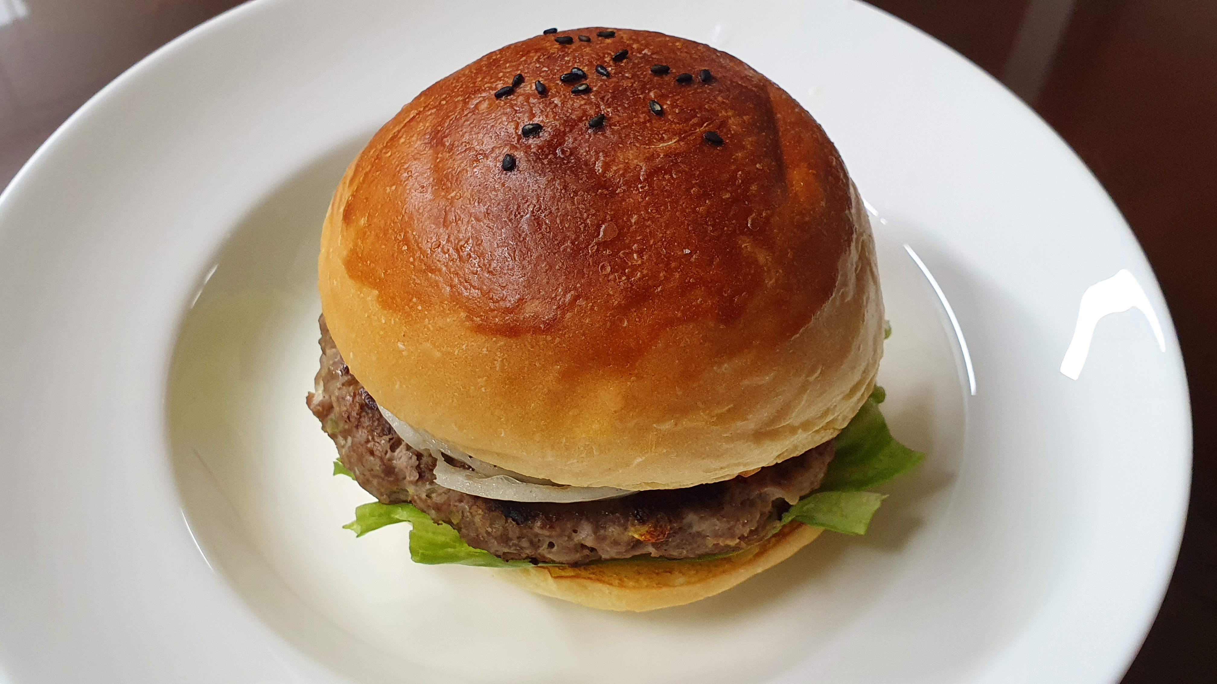 ㅇ 햄버거빵을 팬 위에서 약불로 굽기 (껍질 면은 굽지 않음)