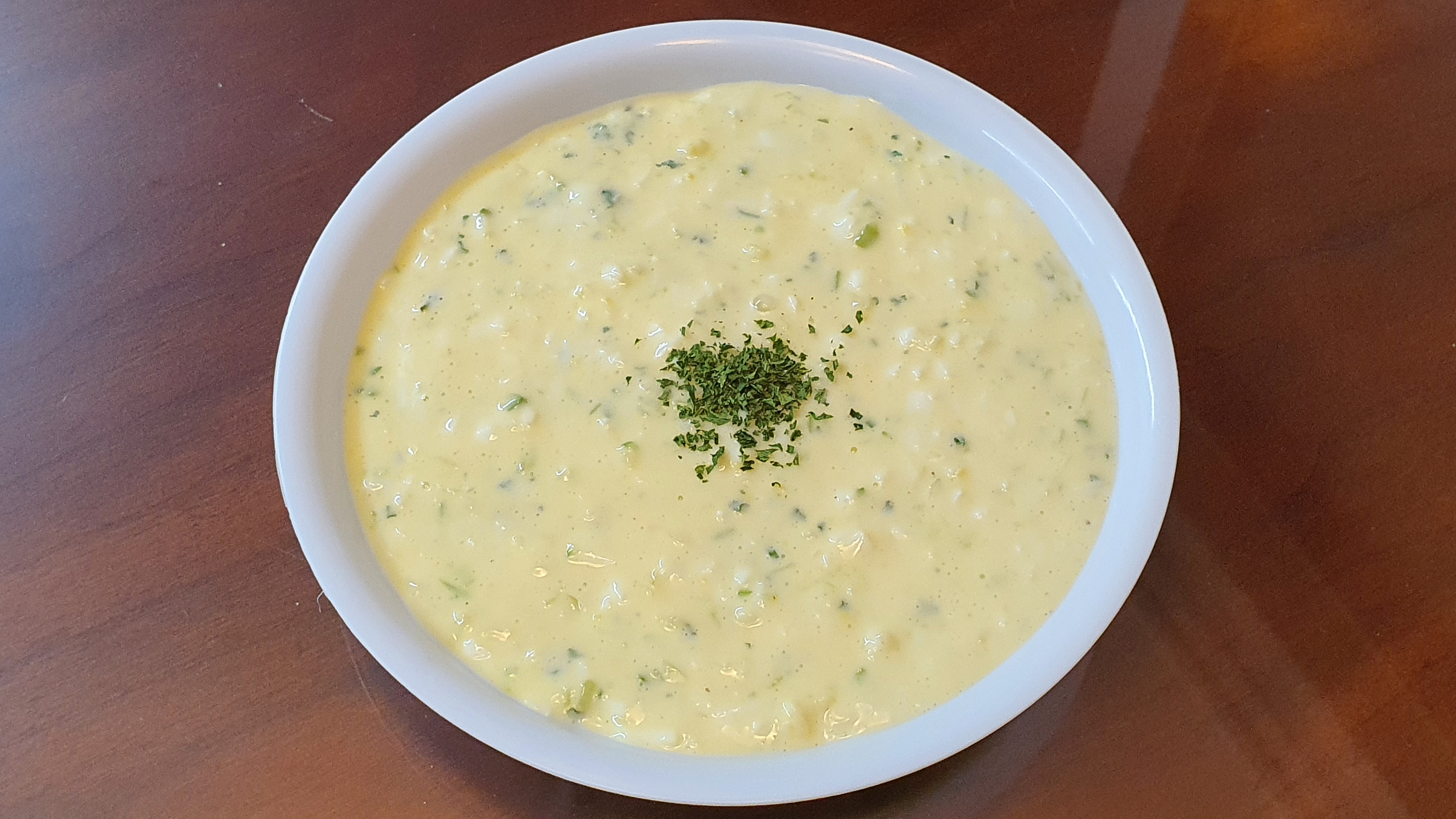 - 다진 흰자 + 노른자 1t → 소금 2g + 흰후추 약간 → 오이피클 → 양파 → 레몬즙 전량 → 파슬리 1g → 마요네즈 전량 → 식초 2mL 넣기 (농도를 보면서 사용 : 천천히 흘러 내리는 정도)