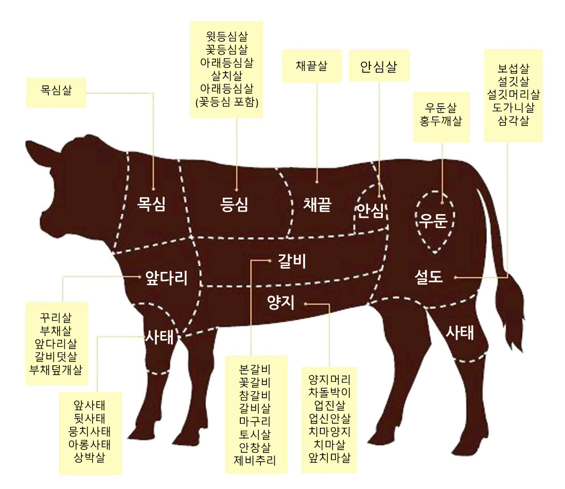 양지머리 차돌박이 업진살 업진안살 치마양지 치마살 앞치마살 |