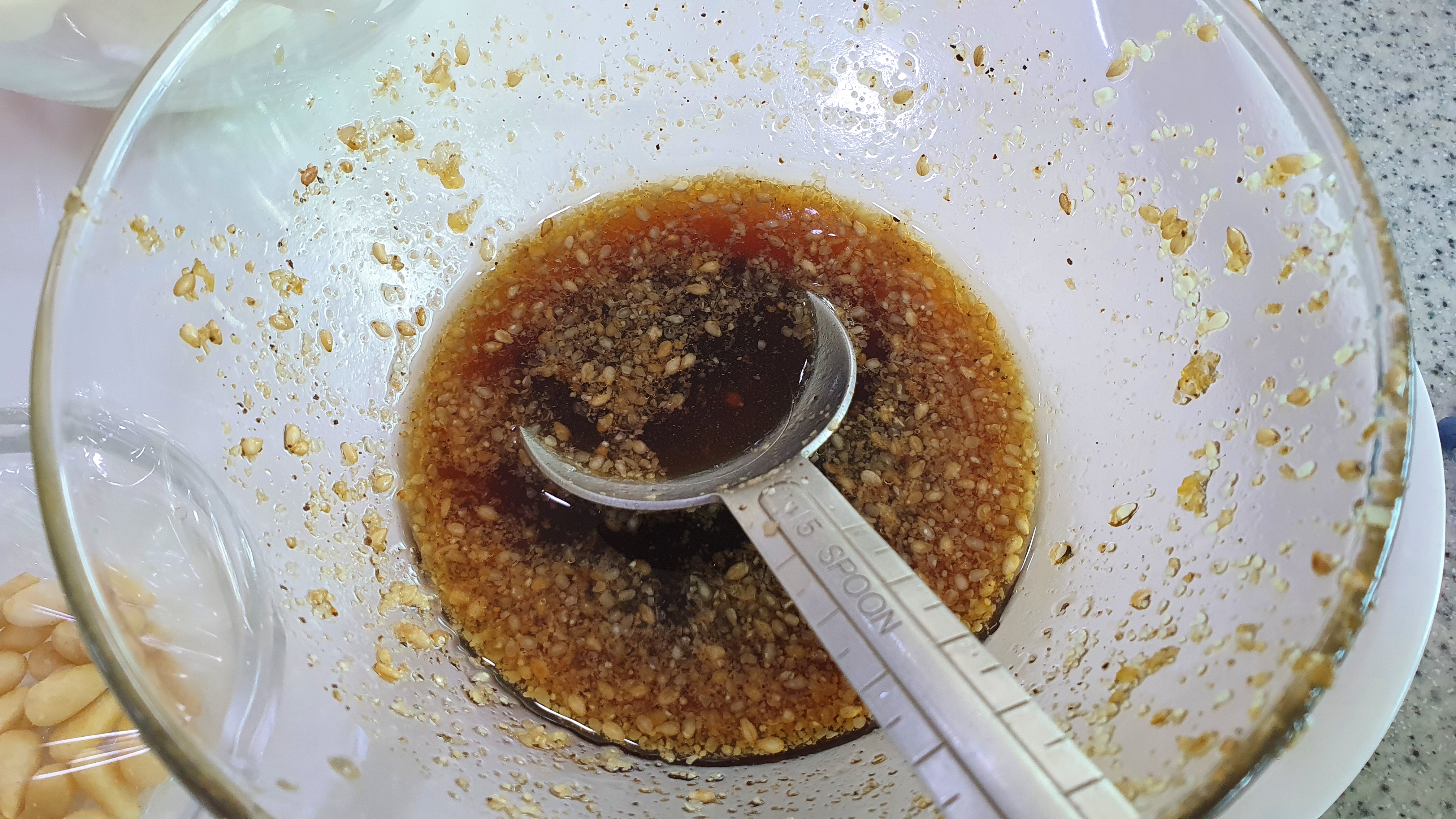 - 참기름 1큰술, 후추 2꼬집, 통깨 1큰술을 넣고 완성한다.